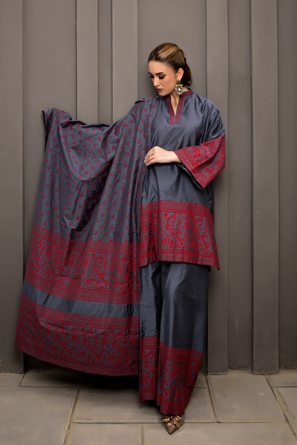 Traditional artistry lies at the core of SANOBER AZFAR. Time honoured techniques such as gotta work, hand block printing, and delicate dabka embroidery are thoughtfully interpreted through contemporary silhouettes, creating designs that feel both timeless and modern.